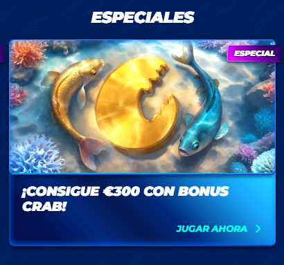 - Bono de bienvenida para juegos de casino: Equivale al 100% y puedes recibir hasta 500 EUR, 200 tiradas gratis y 1 bonus crab.